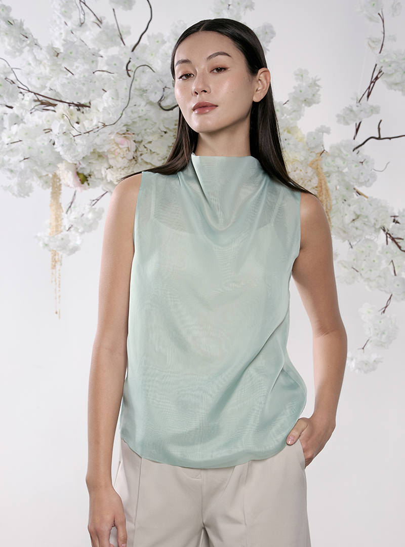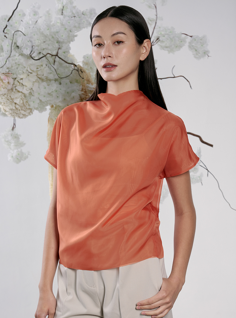Sheer Layered Drape-Neck Top