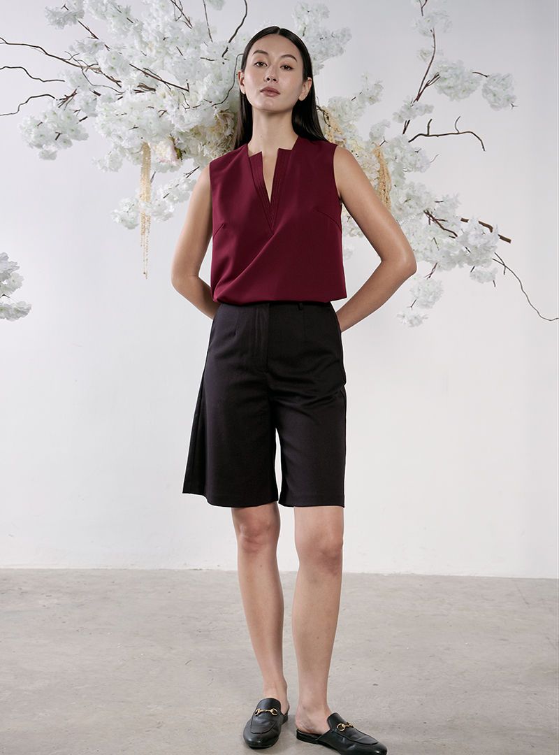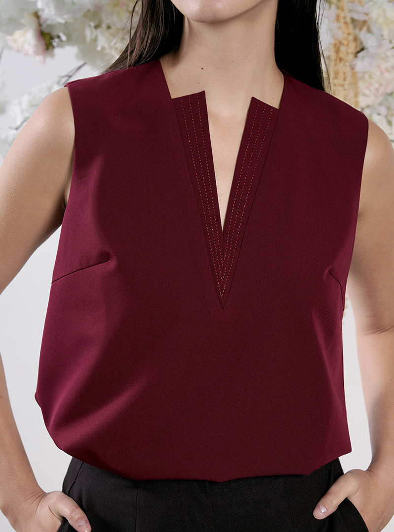 The Double V-Neck Top is one that is adapted from the popular Double V-Neck Jumpsuit. It features the same step detail on its narrow v-neckline, giving this simple top a unique point of interest. The fit is relaxed and its length is perfect for leaving out or tucking in. It’s also fully lined for a seamless look and ultimate comfort.