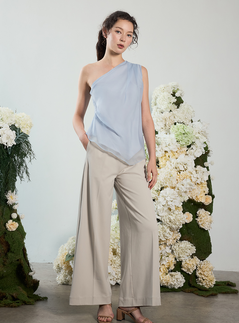The Sheer Layered One-Shoulder Top has subtle design details that make this such a unique piece.