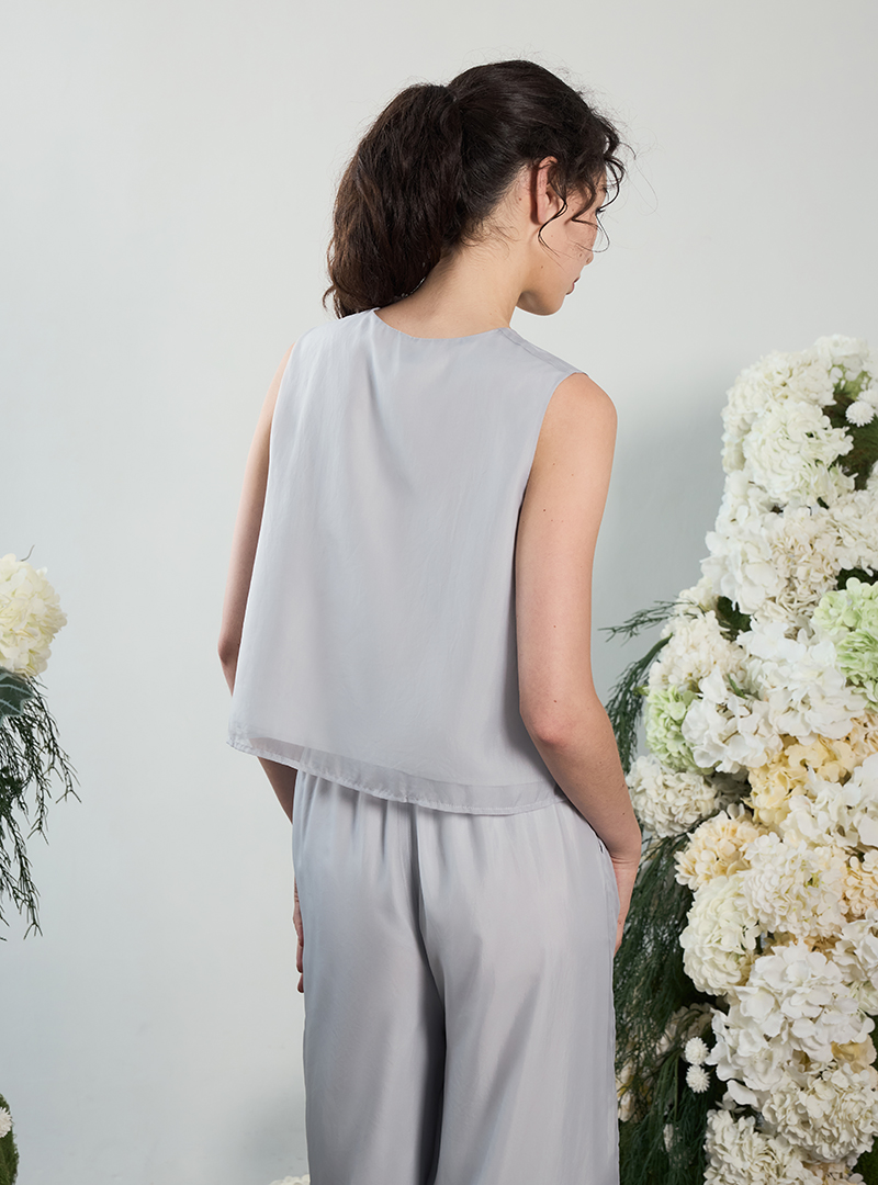 The key feature of this top is its fabric. Using our signature sheer fabric as the top layer, it creates an airy, ethereal look that is elevated and unique. It’s also fully lined for ultimate comfort and to ensure that it’s fully opaque.