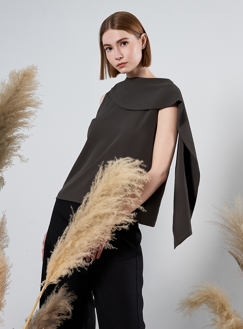 Product Details: Relaxed silhouette | Sash detail around neckline | Smooth and drapey fabric | Fully lined | Comes in Dark Grey
