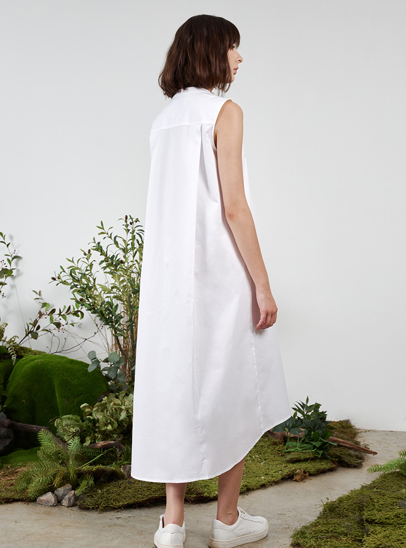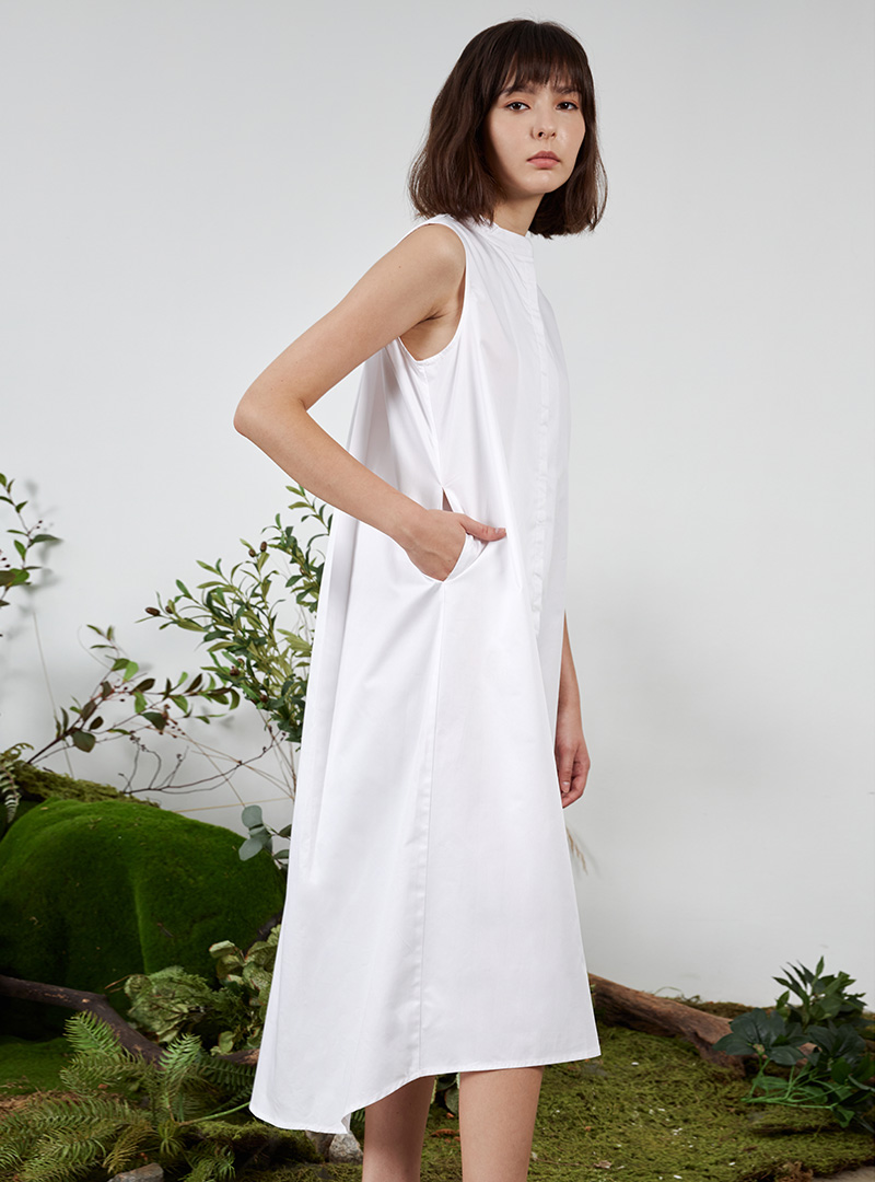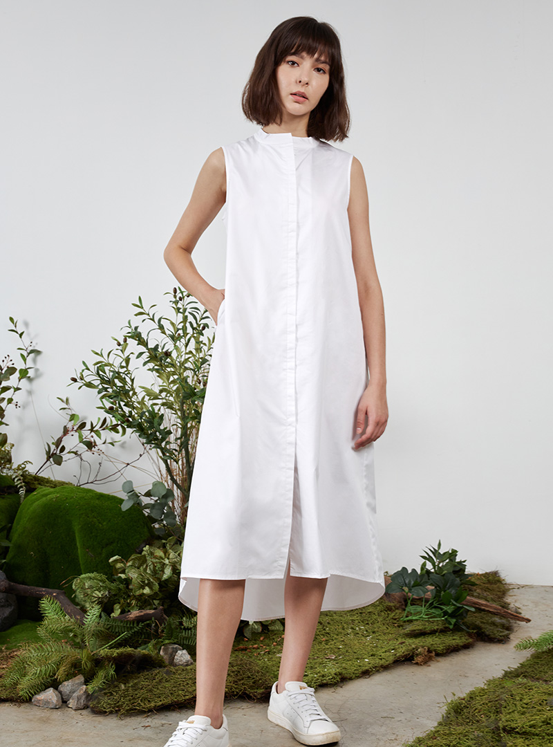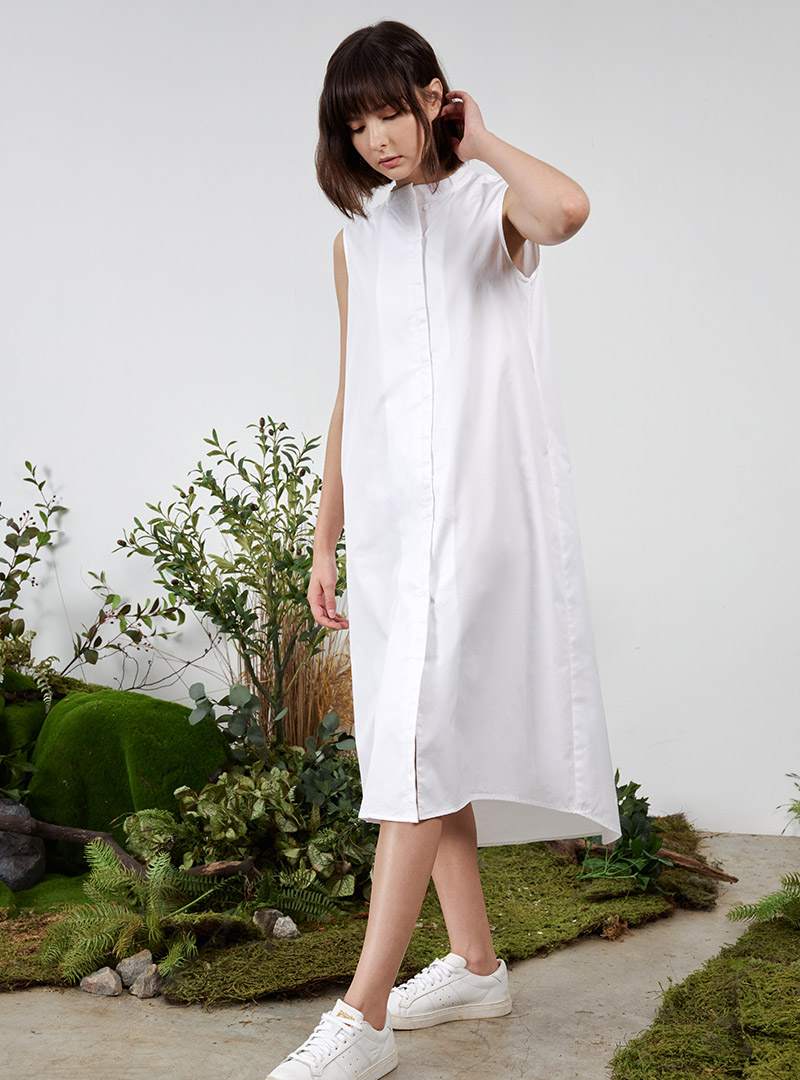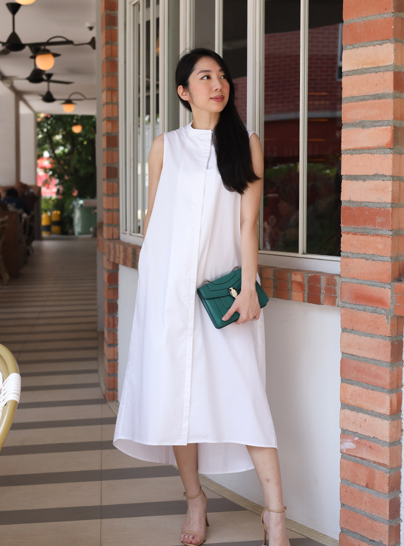 The Tent Dress w Mandarin Collar is one that is flattering and versatile. It features a mandarin collar detail, and a tent-shaped silhouette with a high-low hemline. It’s made with 100% cotton fabric, which makes it breathable and comfortable in our humid climate. We like pairing this with flats for a casual look, or heels for days that are a little more formal.