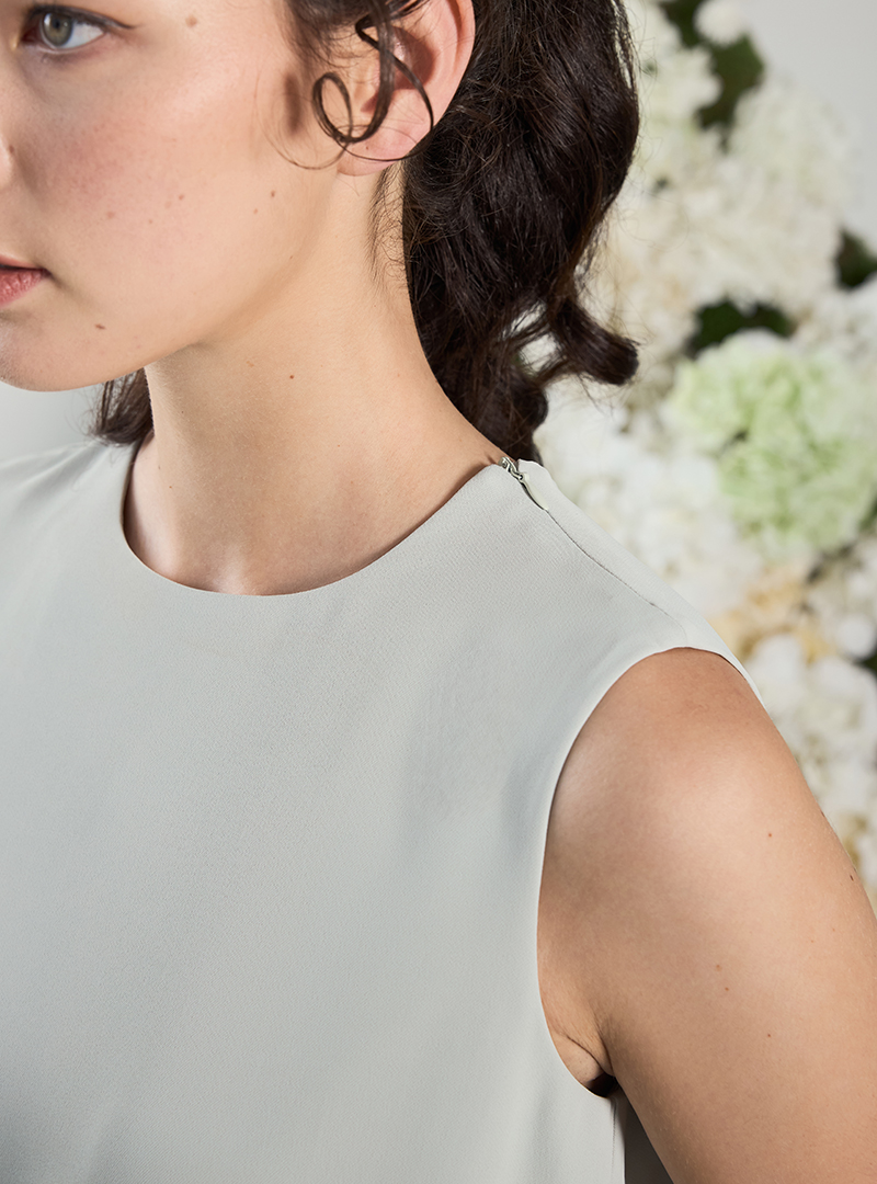 Product Details: Tent-silhouette | Round neckline | Overlap back detail | Fully lined | Back ribbon detail | High-low hemline | Comes in Dark grey & Ice Grey