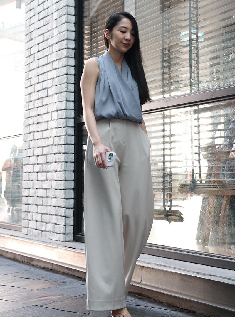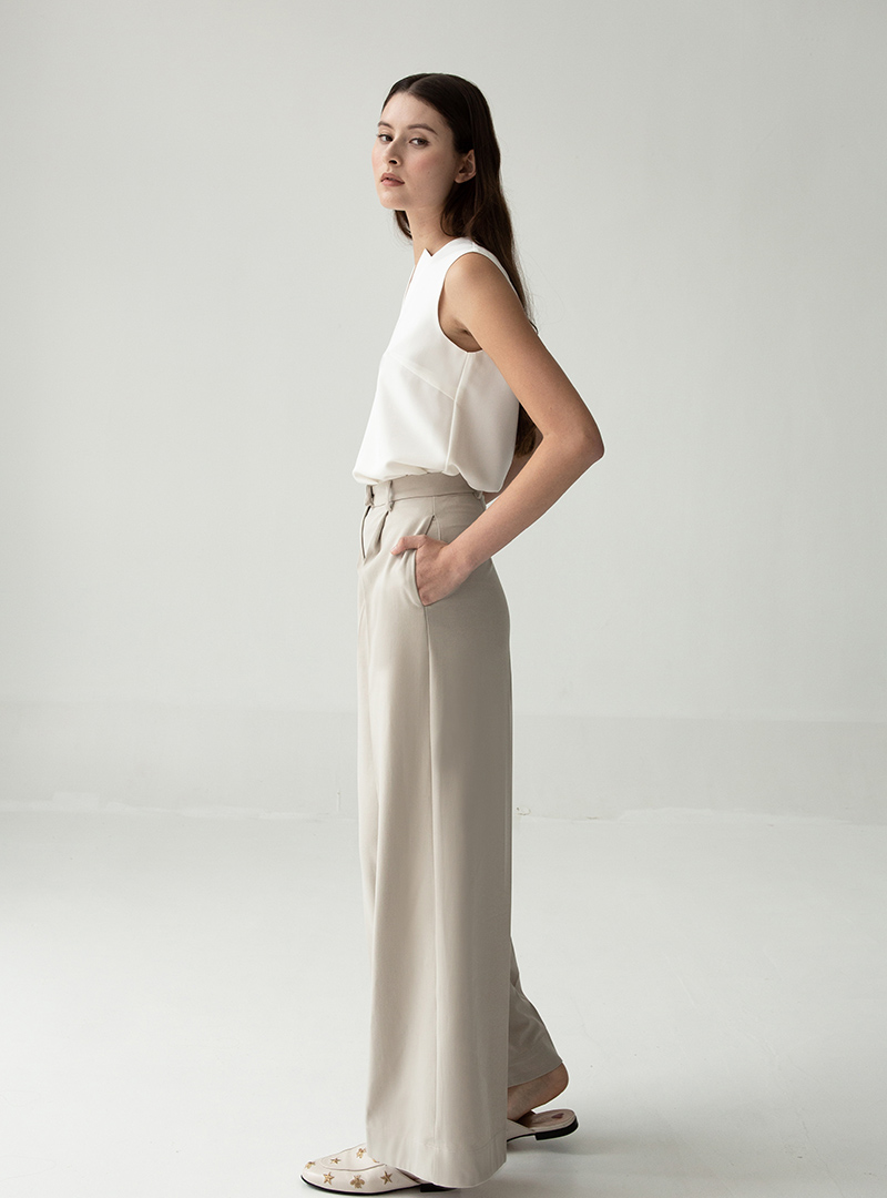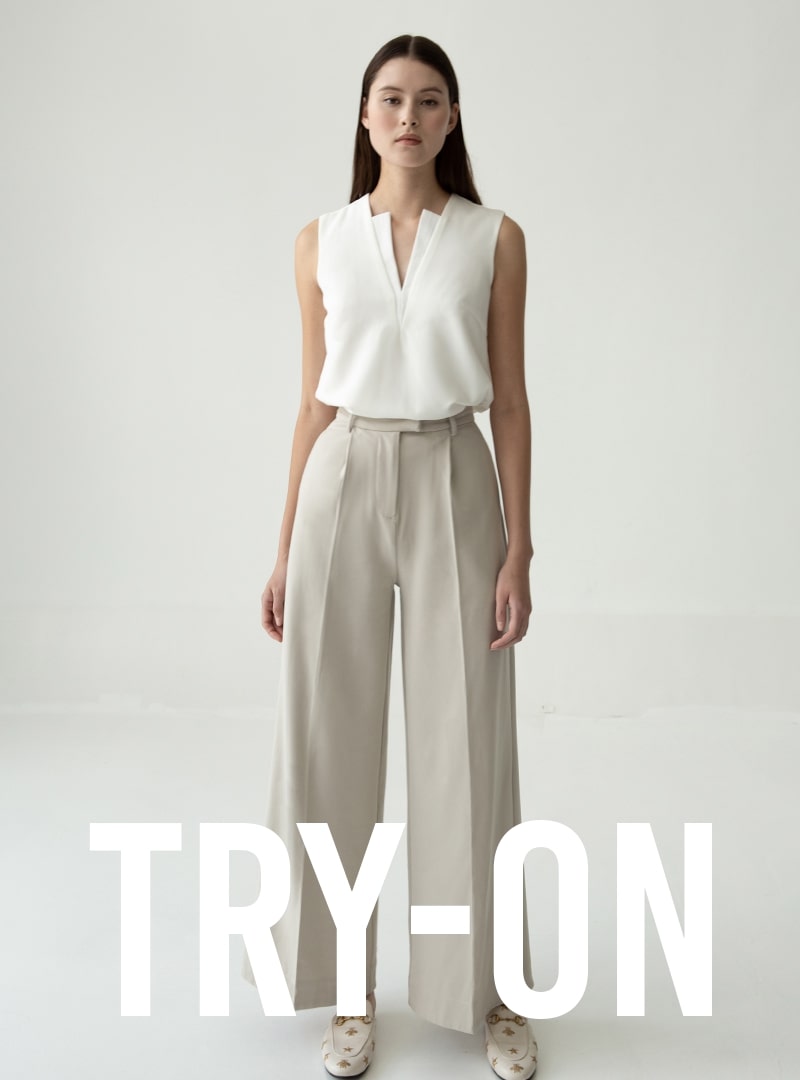 The Ultra Wide Leg Pants is our absolute new favourite. The cut of the pants is extremely wide, adding flare to any outfit. It sits high on the waist, creating an illusion of longer legs. It also has belt hoops for those of you who want to add your own touch to this classic pair of pants. We like pairing it with the Double V-Neck TopDrape-Neck Top, Oversized Shirt w Adjustable Sleeves or the Fitted Vest.